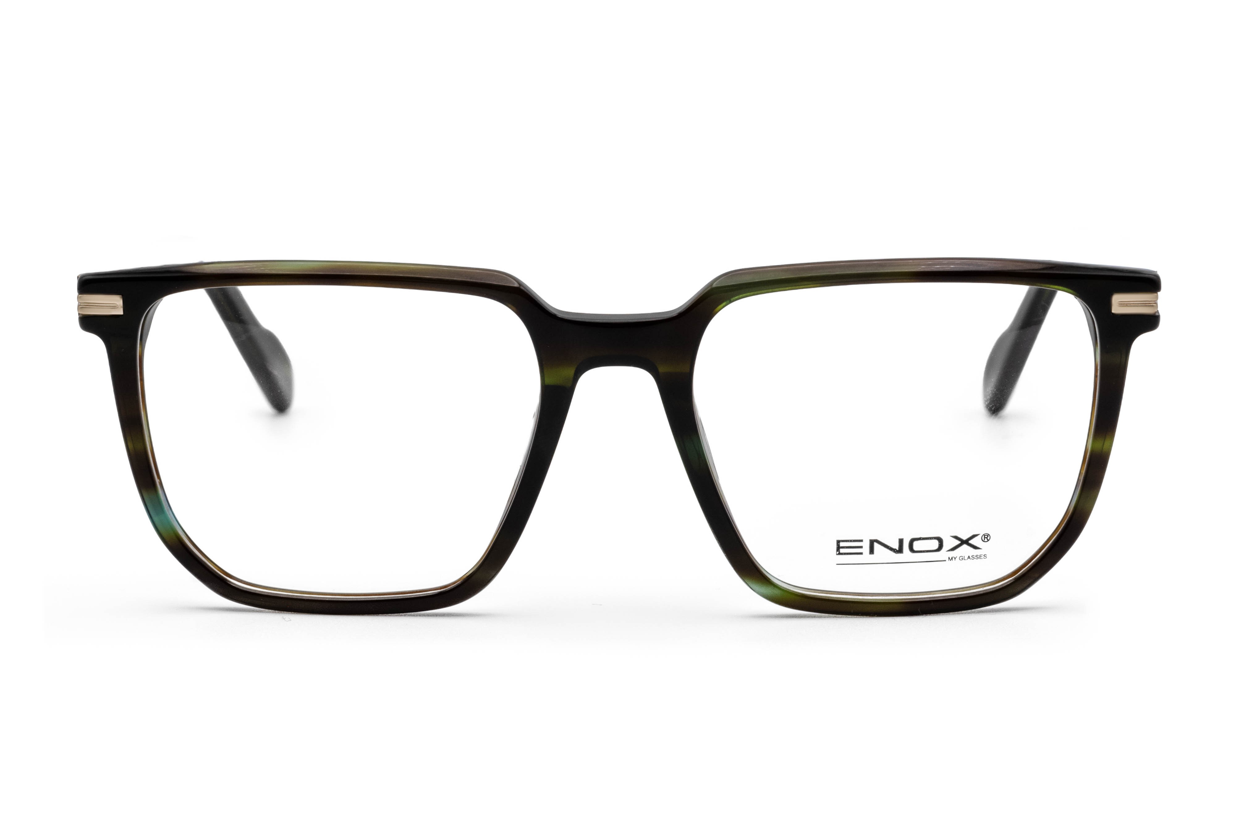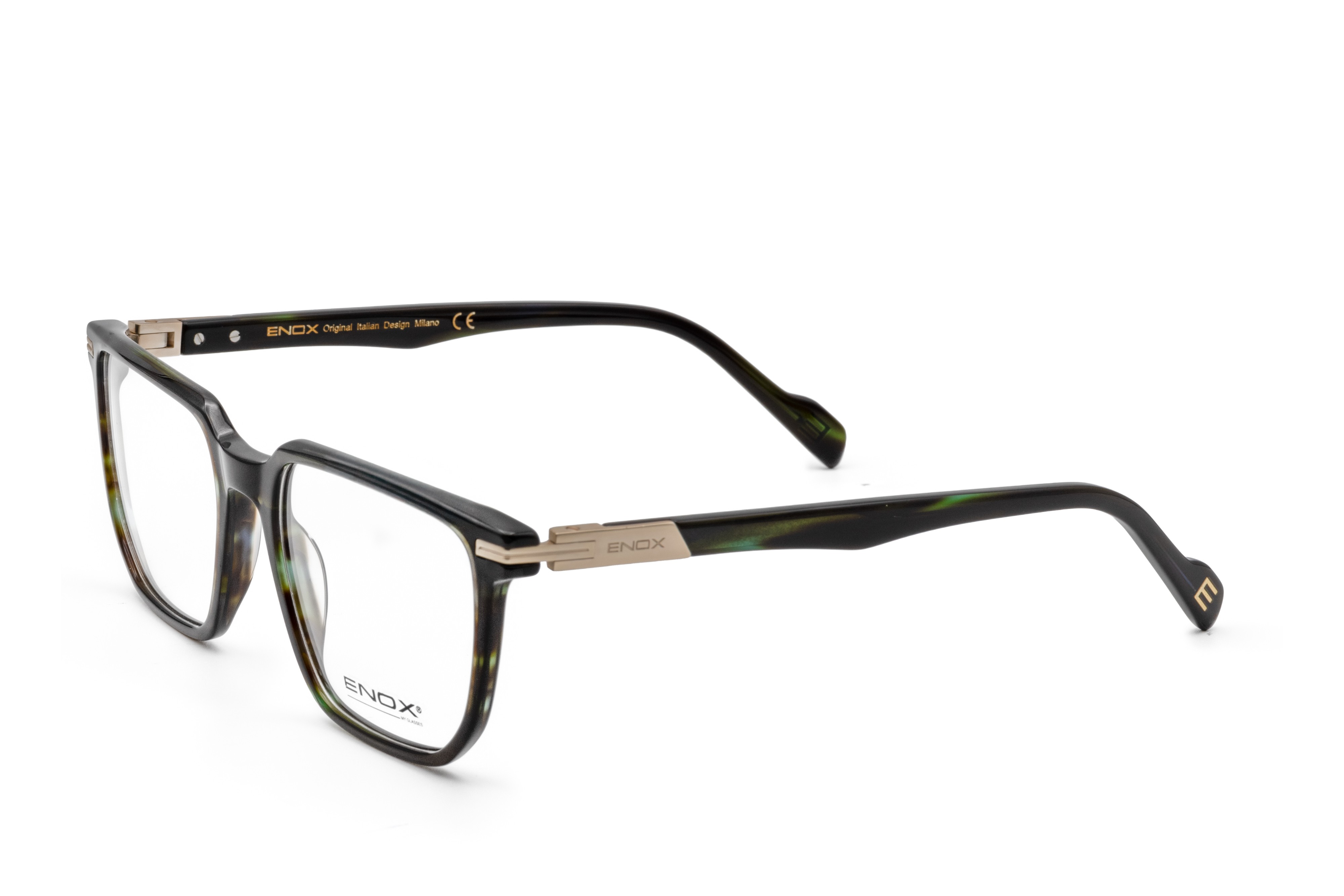 A model from the new ENOX men's collection, realized in shiny acetate, with a square, wide, and linear design.