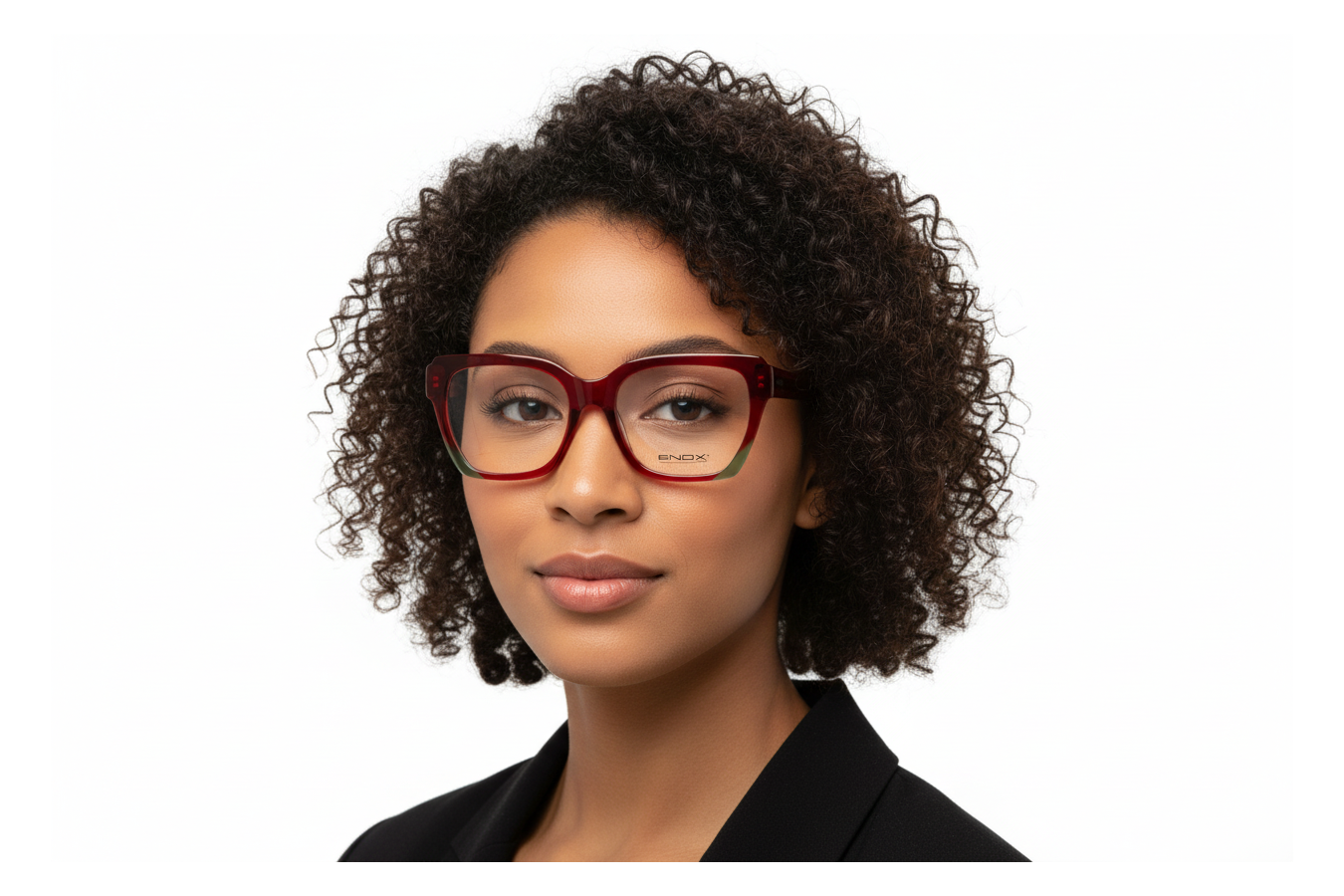 The flat temples have three aligned circular metal friezes and a logo embedded in the terminal. Available in different color variants, from total black, to variants with contrasting colored corners and tips, such as turtle / black, black / burgundy, emerald / turtle, amaranth / cream. It is an elegant and important model, which doesn’t go unnoticed in the look of the woman of great style.
