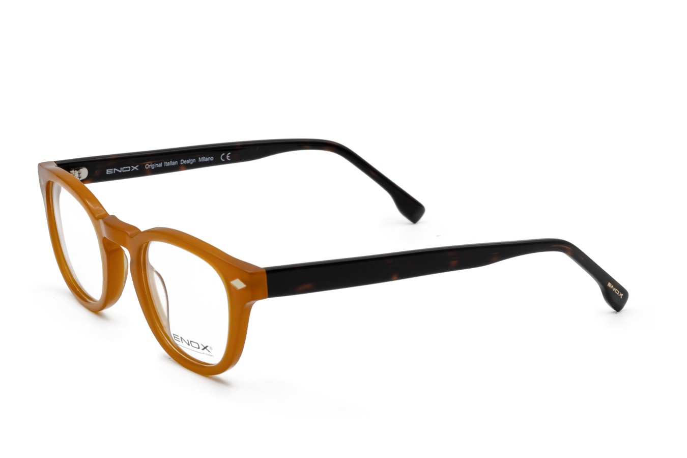 Modello evergreen di occhiali da vista unisex, in acetato lucido di alta qualità, che emerge nella nuova collezione ENOX, rinfrescato e aggiornato nelle nuances.