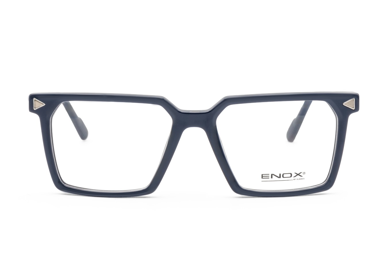 Modello di occhiale da vista della nuova collezione uomo ENOX, che si trasforma in occhiale da sole con un semplice gesto.